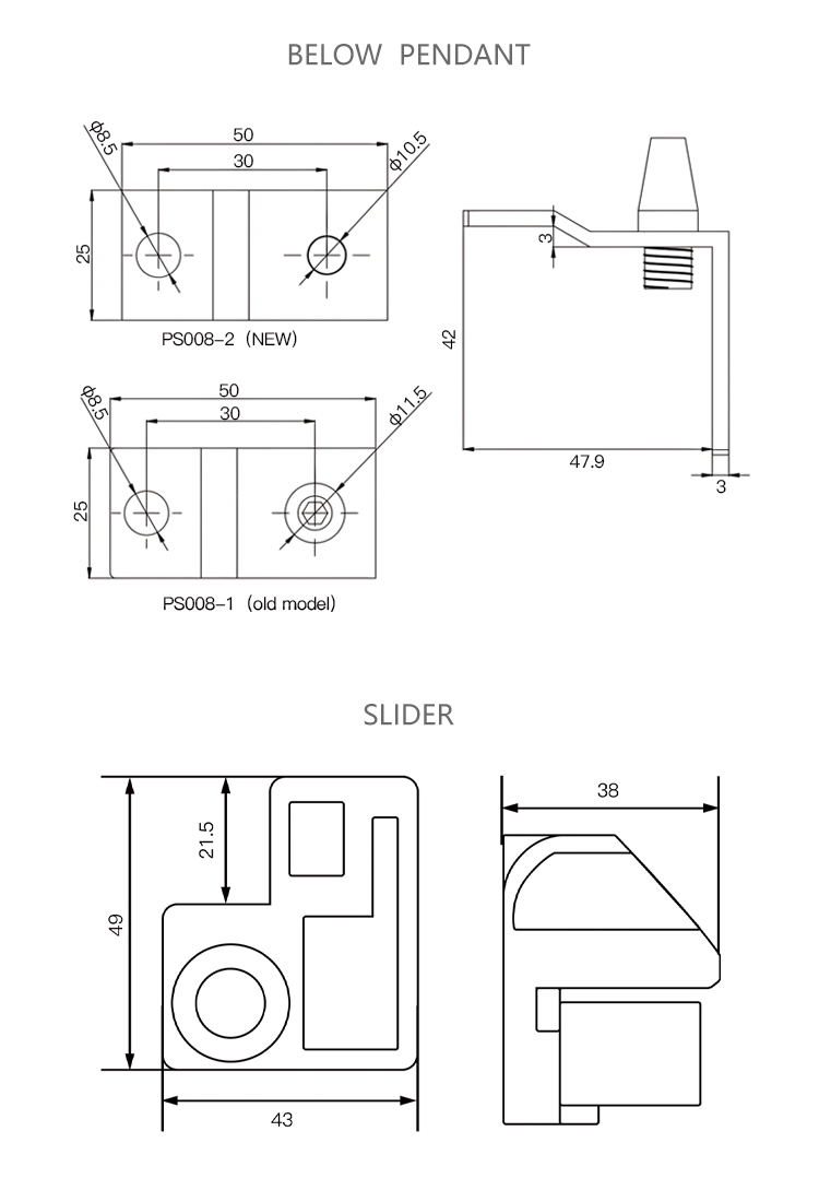 RP-007-1-2 Anti-Virus Cabinet Accessories - Left and Right Hanging Pieces - Galvanized Parts - 90% Alloy Profiles - PS Cabinet Hinges
