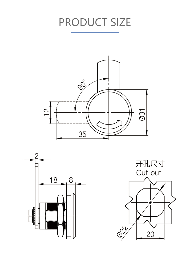 A40-22 cylindrical lock outdoor distribution box rainproof lock switch cabinet door lock instrument box cabinet lock electrical cabinet lock