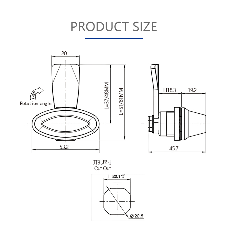 MS414 Rotating Plastic Handle Lock Ring Net Cabinet Door Lock Plastic Power Distribution Box Lock Machine Case Lock File Box Lock