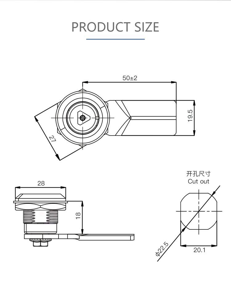 MS705-3S Triangular Lock Distribution Box Cabinet Door Lock Electrical Cabinet Equipment Garbage Bin Round Cylinder Lock Torsion Lock
