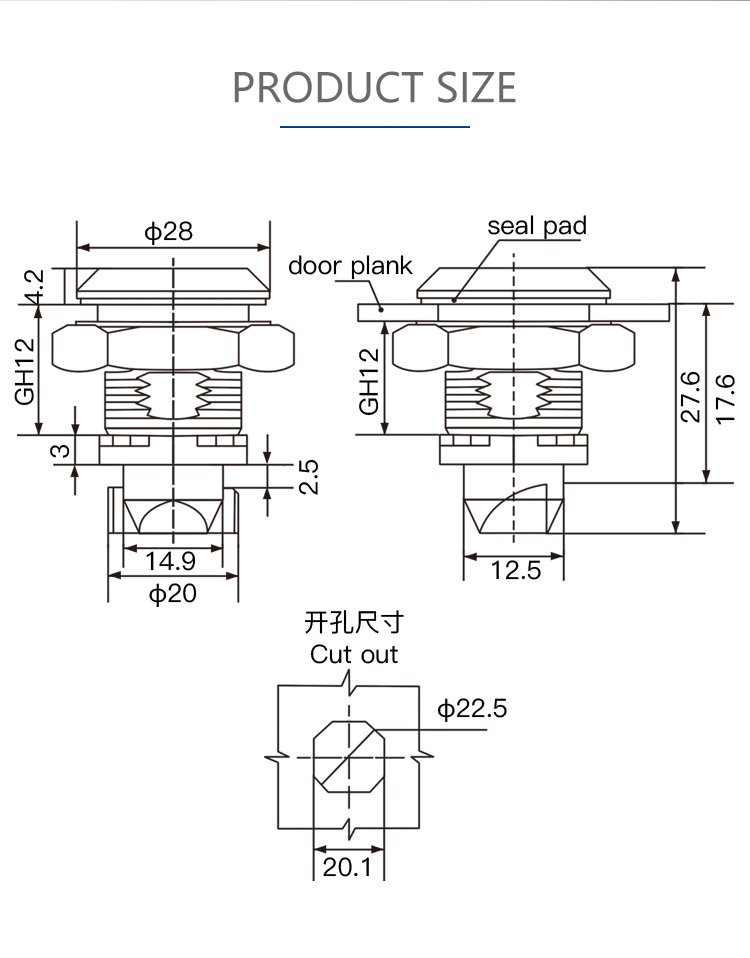MS705 Inclined Angle Distribution Box Lock Locking Tongue for Locking Electrical Panel Door Lock for Base Industry Panel Door Electrical Cabinet Round Cylinder Lock