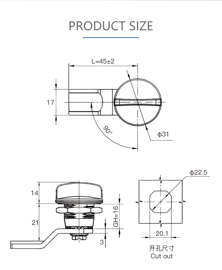 MS715-2 Zinc Alloy Tongue Lock Storage Cabinet Electrical Cabinet Lock Distribution Box Cylinder Lock Black Rotating Lock