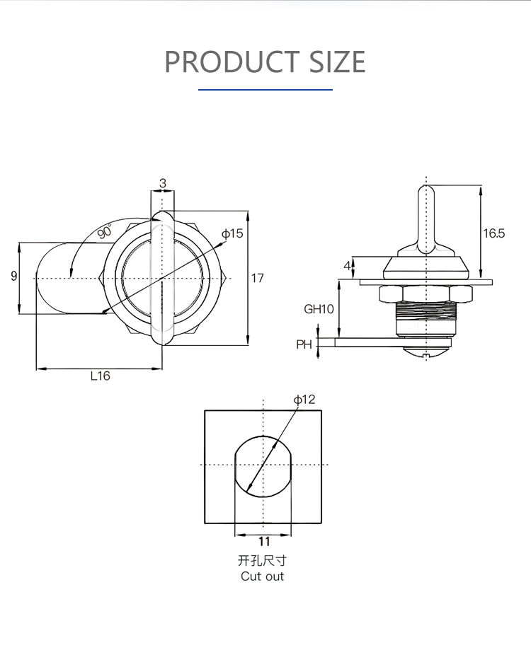 MS715-12 Small Round Lock, Cylindrical Lock, Electrical Cabinet Box Lock Industrial Cabinet Door Lock Power Distribution Cabinet Tongue Lock