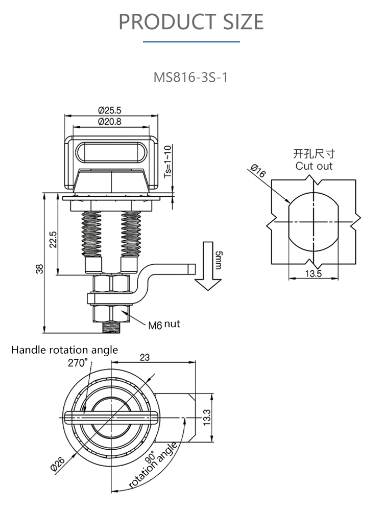 MS816-3S-1 Industrial Equipment Cabinet Door Lock Extension Door Lock Electrical Cabinet Door Lock Control Cabinet Door Lock