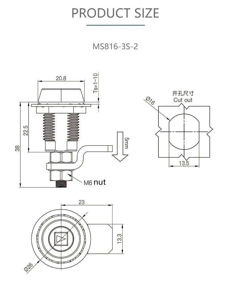 MS816-3S-2 Four-sided telescopic tongue lock distribution box cabinet lock electrical cabinet door lock switch cabinet distribution box cylindrical lock
