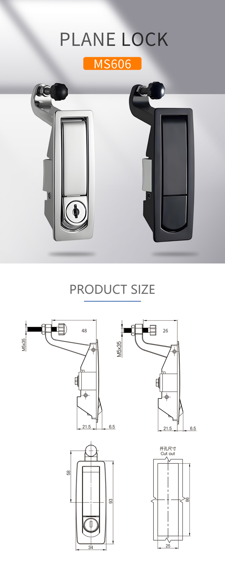 MS606 Flat Bounce Electric Cabinet Door Lock - Push-type Lever Lock with Zinc Alloy Flat Embedded Trigger Button Lock