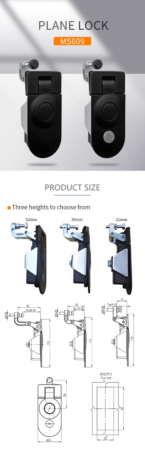 MS609 lock compression type flat door lock zinc alloy switch cabinet door lock cabinet communication cabinet fire cabinet camper lock