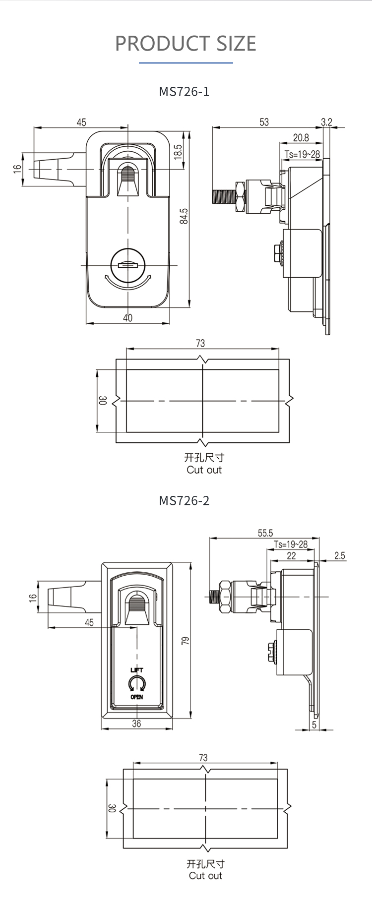 MS726 flat cabin door lock power distribution box electrical cabinet lock tongue lock machine cabinet iron sheet cabinet lock fume purifier door lock