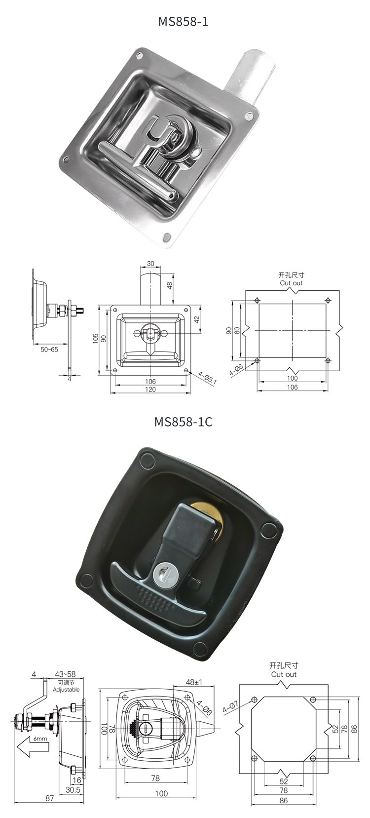 MS858 flat lock stainless steel caravan lock box cabinet lock car door lock toolbox electrical cabinet box cover lock