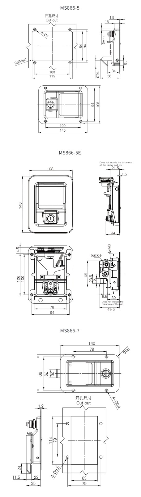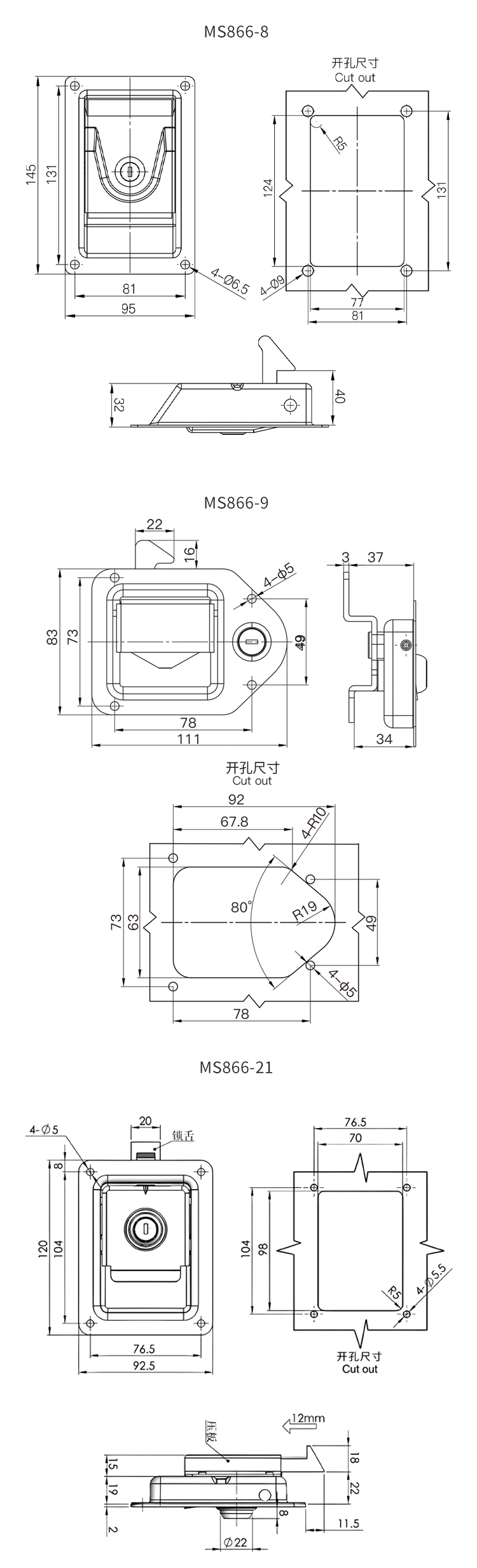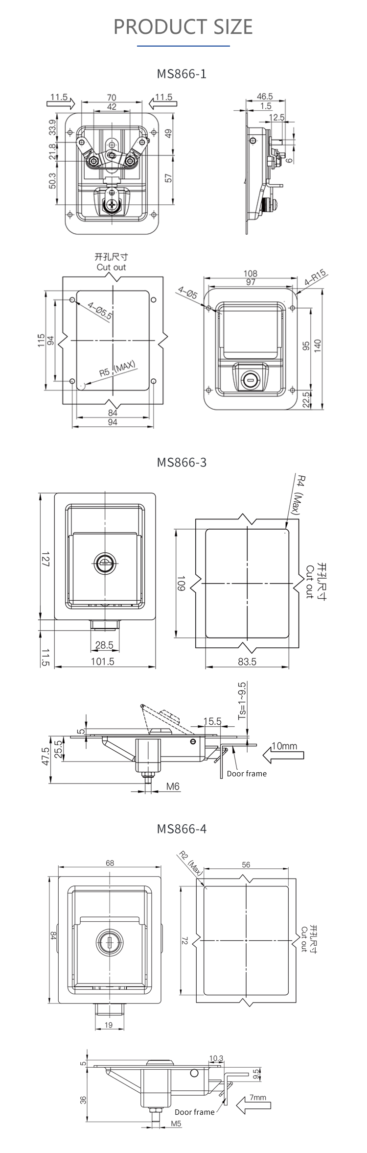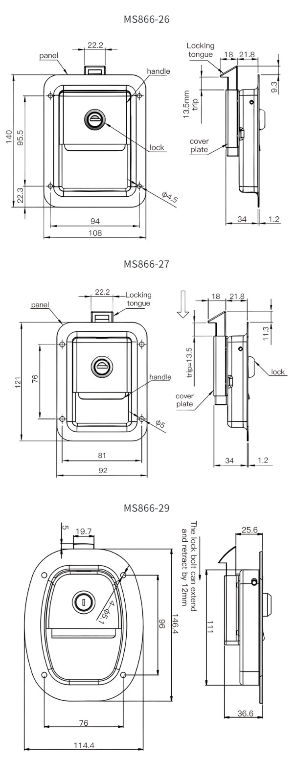 MS866 stainless steel panel lock toolbox van engineering campervan flat handle generator hood door lock