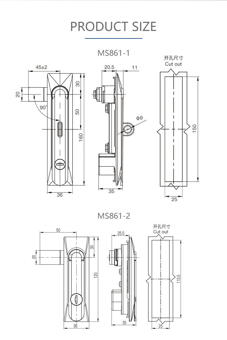 MS861 black flat lock switch cabinet control cabinet door lock electrical cabinet communication cabinet network cabinet lock
