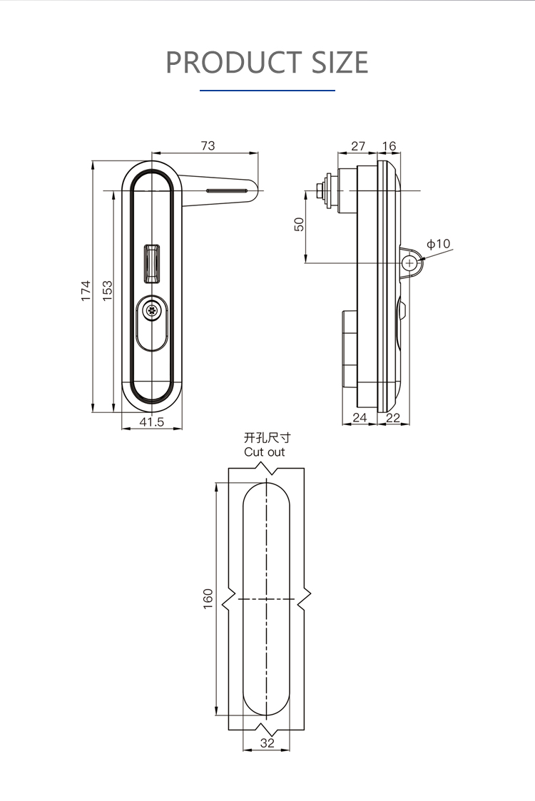 MS864 outdoor cabinet equipment panel lock high and low voltage distribution box lock switchgear cabinet door lock