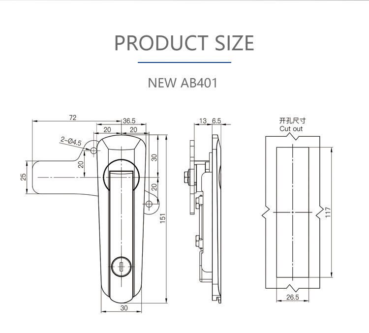 New AB401 flat lock switch cabinet door lock distribution box cabinet door lock fire cabinet lock mechanical equipment handle