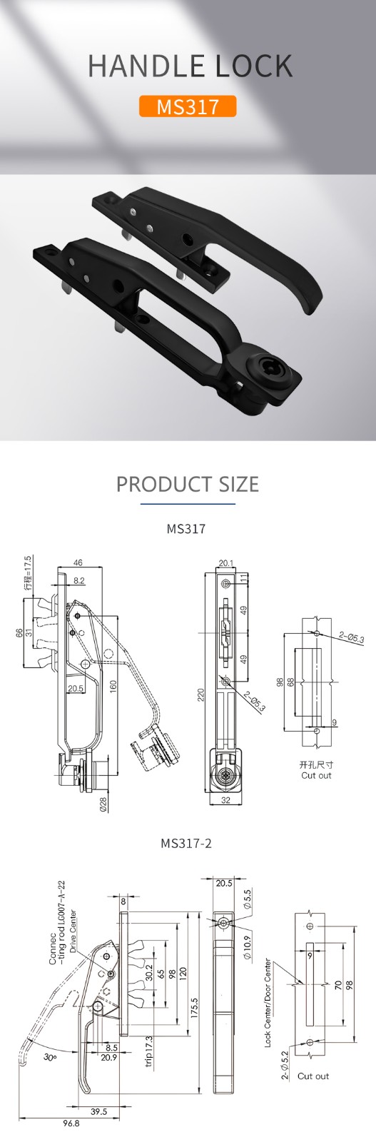 MS317 lock Middle mounted cabinet lock Inflatable cabinet door lock Machine box for external mechanical door lock Industrial electric control cabinet lock Handle lock