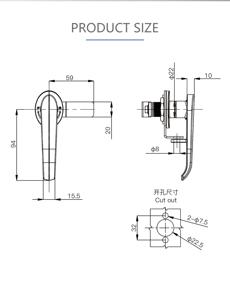 MS913A handle lock for electrical cabinet box cabinet outdoor distribution cabinet door lock with hanging handle lock tool box cabinet door lock