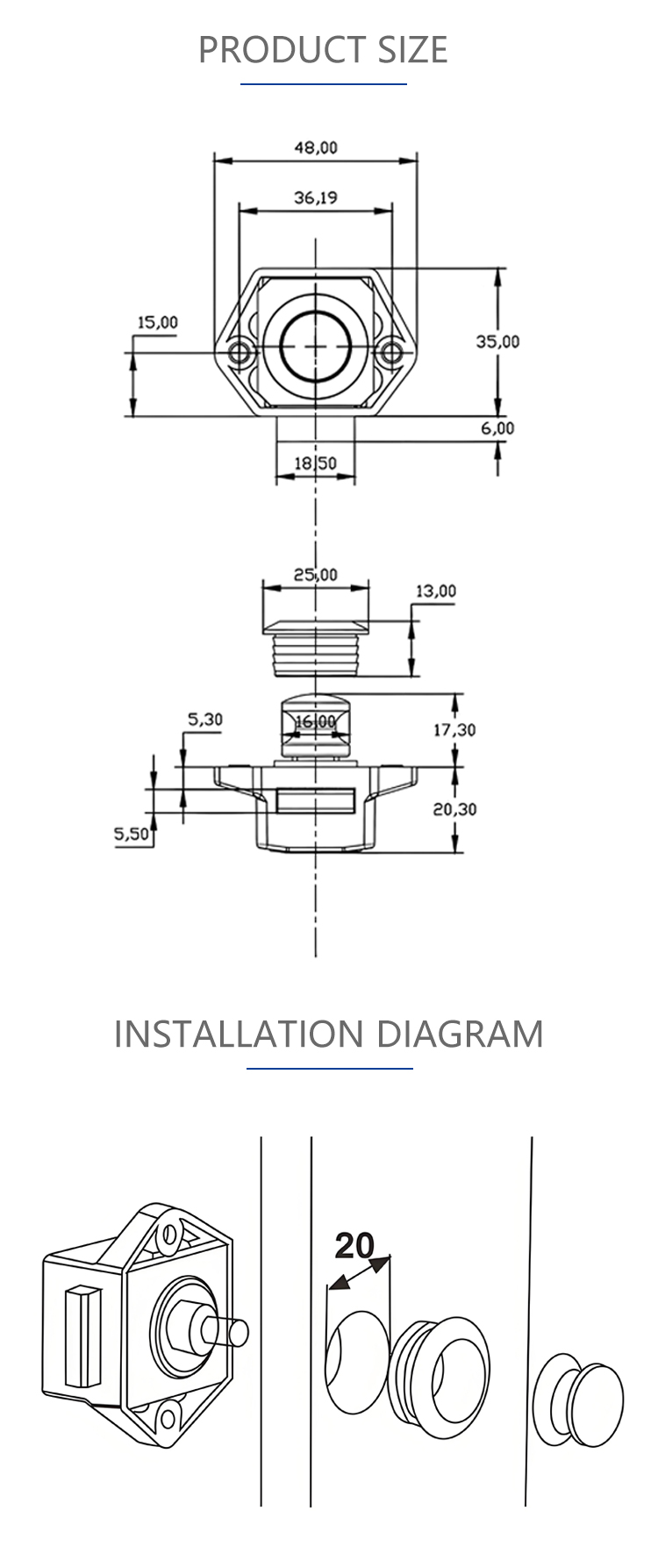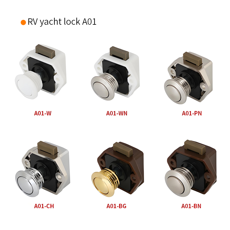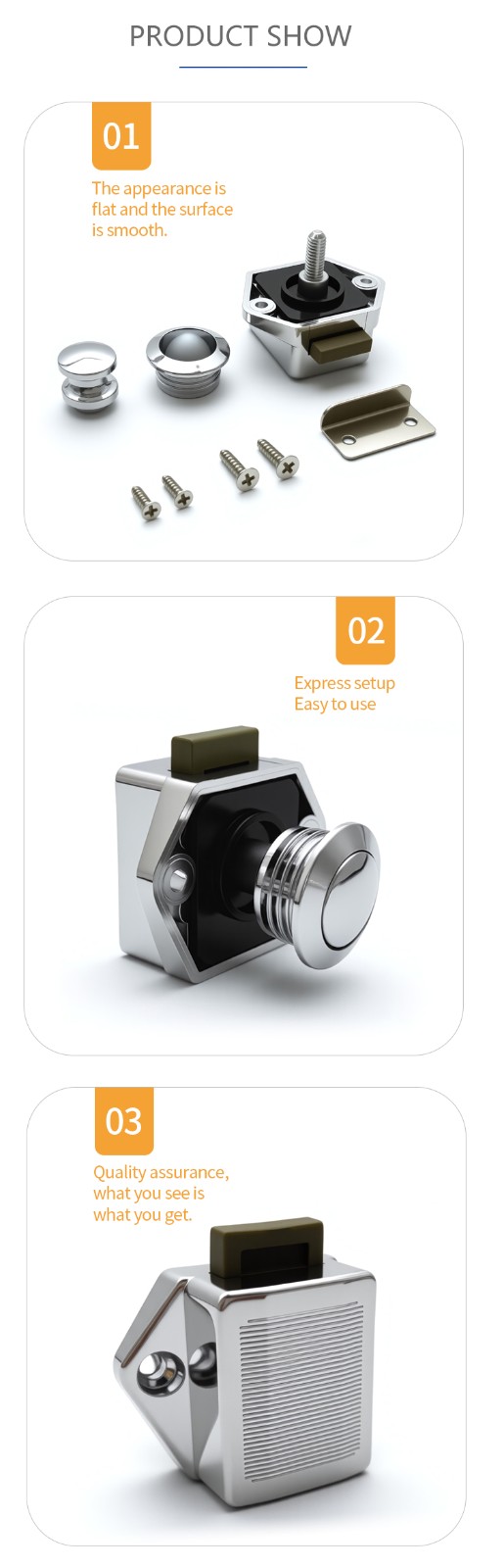 A01 RV lock, yacht boat button lock, cabinet door drawer press spring lock, keyless handle, hidden lock for wall cabinet