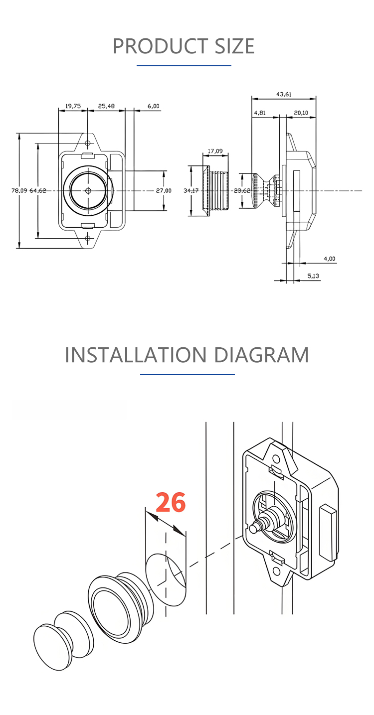 A02 RV yacht marine furniture button lock drawer without pull handle lock modification accessory for drawer without key pressing lock