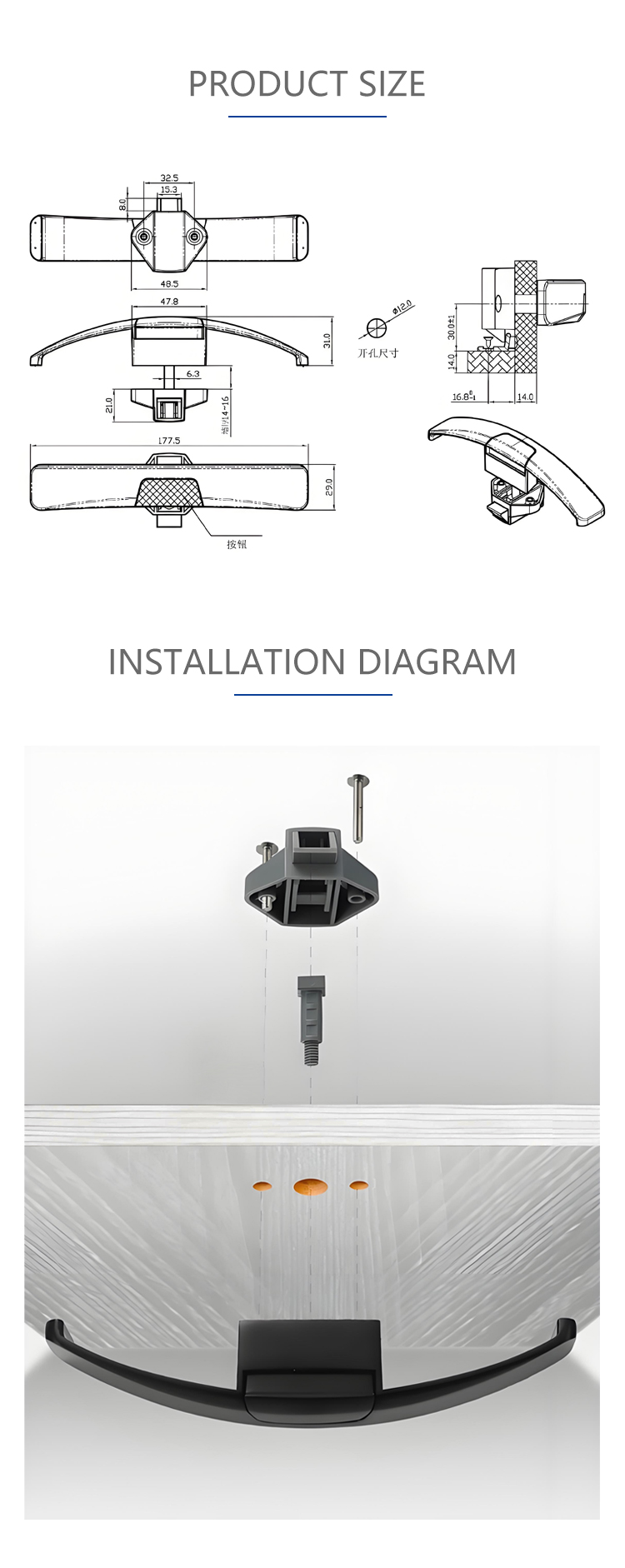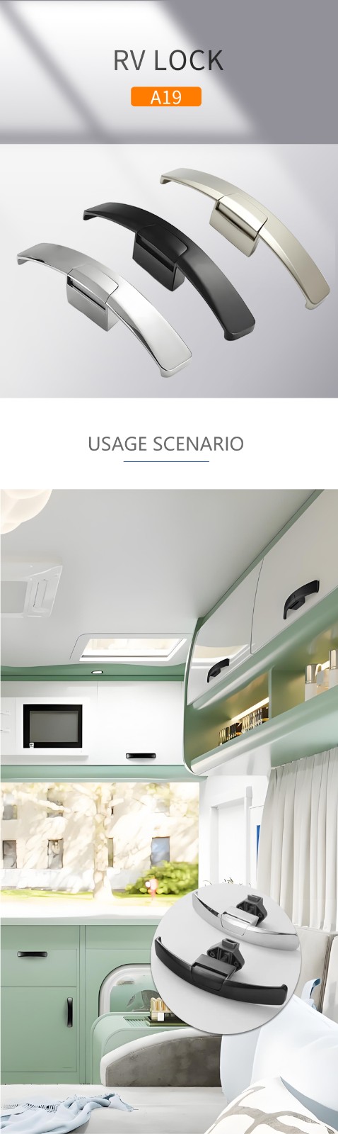A19 RV yacht handle lock button lock car handle RV handle lock RV accessories cabinet lock