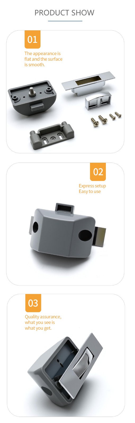 The company was founded in 2008. It is an enterprise integrating R&D, production and sales. Its main products include electronic lock series, RV lock series, flat lock series, connecting rod lock series, handle lock series, cylindrical lock series, and water vending machines. Lock series, stainless steel series, hinge series, accessories series, lock rod series, etc.