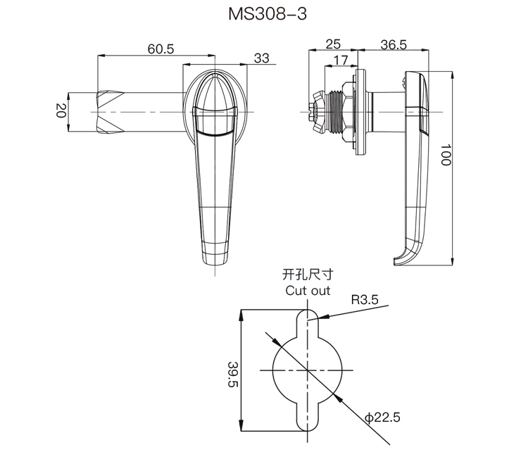 MS308-2 Stainless Steel Industrial Distribution Box - Door Handle Lock Switch for Control of the Cabinet Door