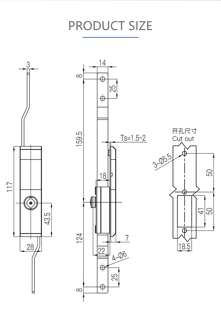 MS821 Sky-ground linkage lock made of 304 stainless steel distribution box switch control cabinet door lock industrial cabinet door lock