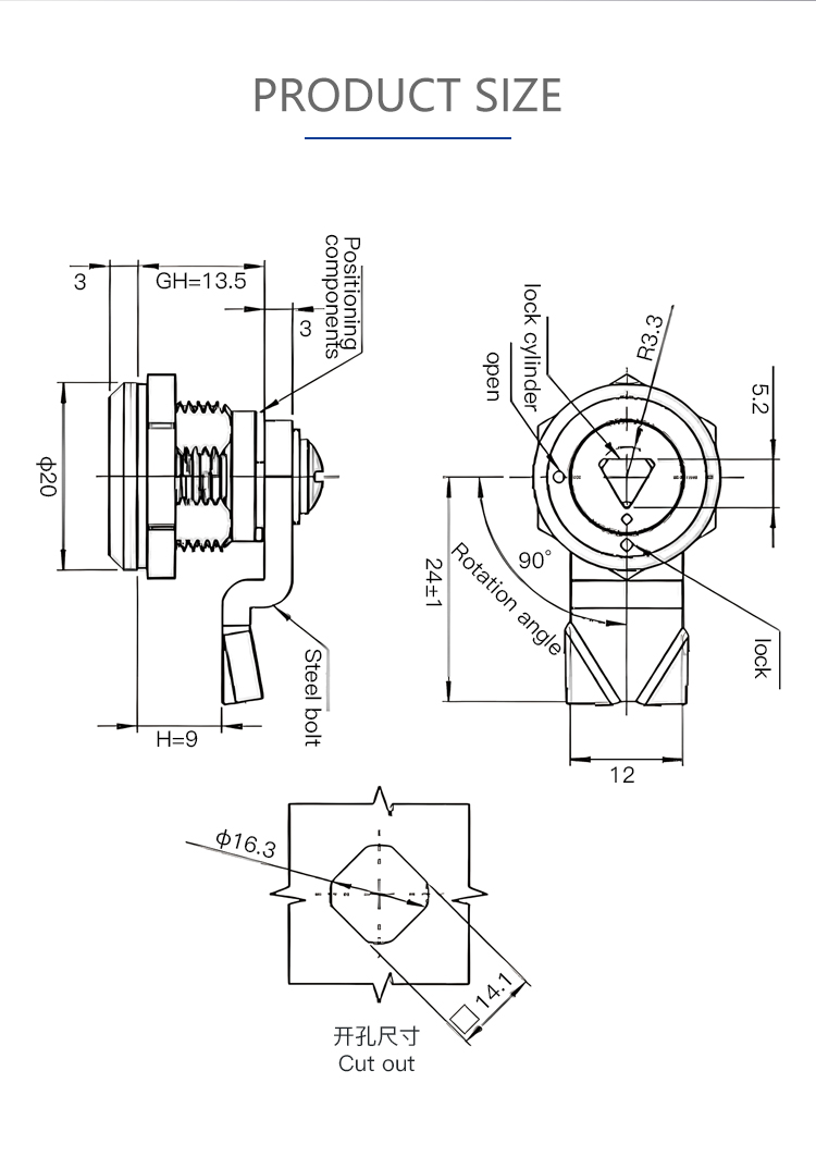 MS845 stainless steel power distribution cabinet lock industrial mechanical equipment tongue lock cylindrical lock power distribution box cabinet door lock