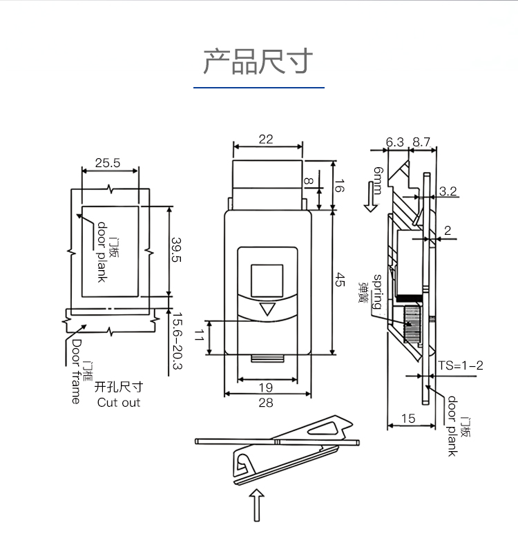 DKS725塑料弹簧机柜搭扣锁侧门扣暗箱柜门卡扣锁嵌入式暗拉手