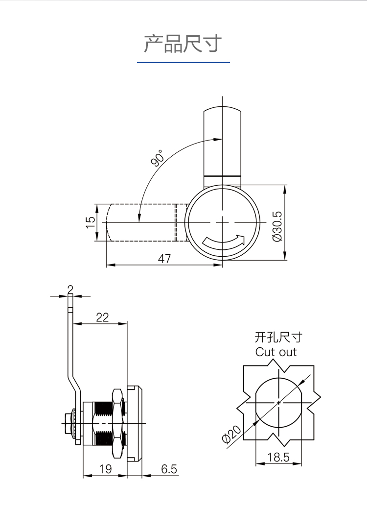 A400配电箱动力柜门锁圆柱锁防水盖转舌锁户外电柜箱锁