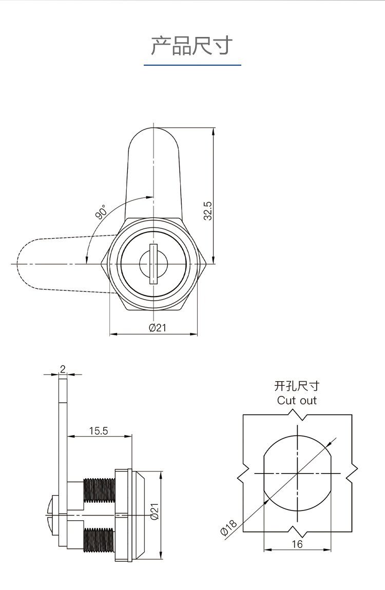 MS103 抽屉小圆锁转舌锁文件柜更衣柜铁皮柜配电箱锁信箱转舌锁