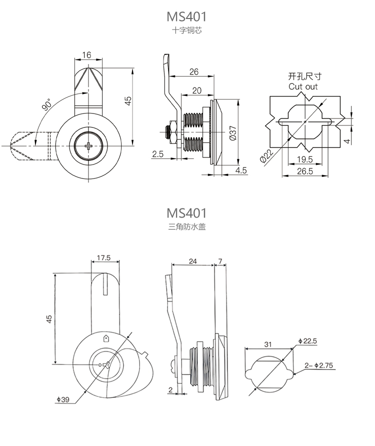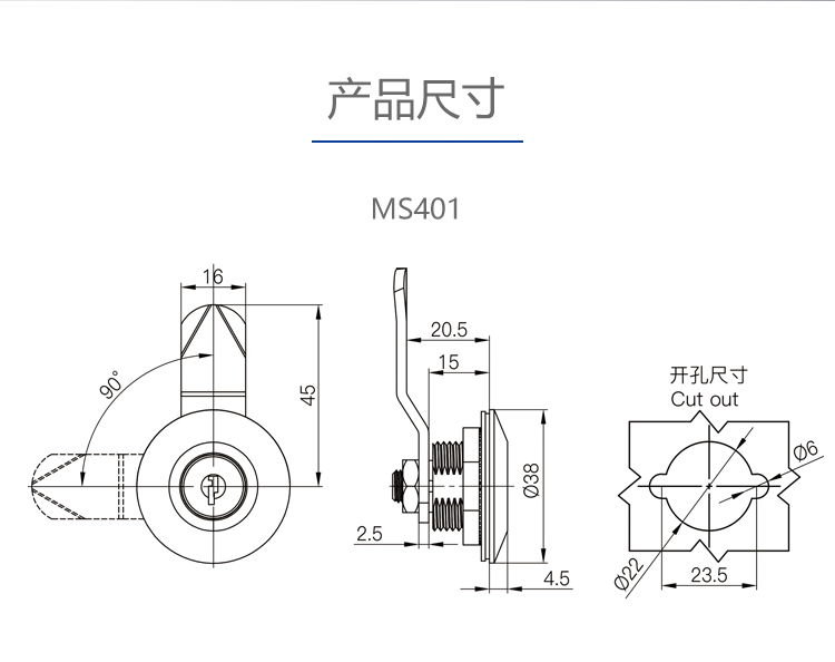 MS401配电箱电表锁工业设备电柜门锁机箱圆柱锁转舌锁