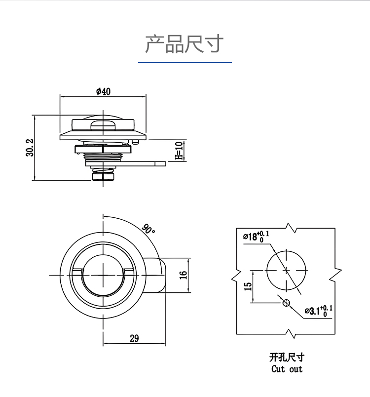 MS404-1锌合金折叠式转舌锁手柄挡片门锁拉环简易式柜门拉手锁