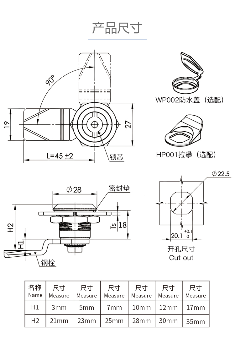 MS705三角锁电柜门锁一字转舌锁配电箱开关柜垃圾箱圆柱锁