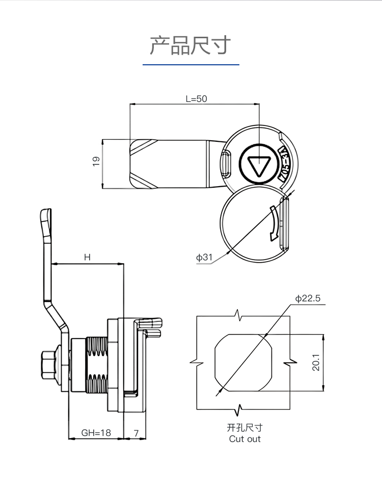 MS705-3A防水带盖锁转舌锁工业锁配电箱开关柜锁消防栓柜门锁