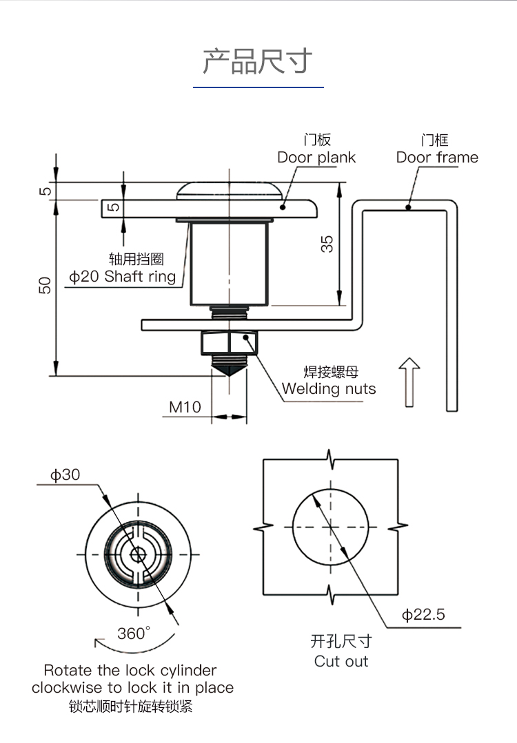 MS707圆柱锁配电箱机柜门锁控制柜门锁工业机柜锁中置柜门锁
