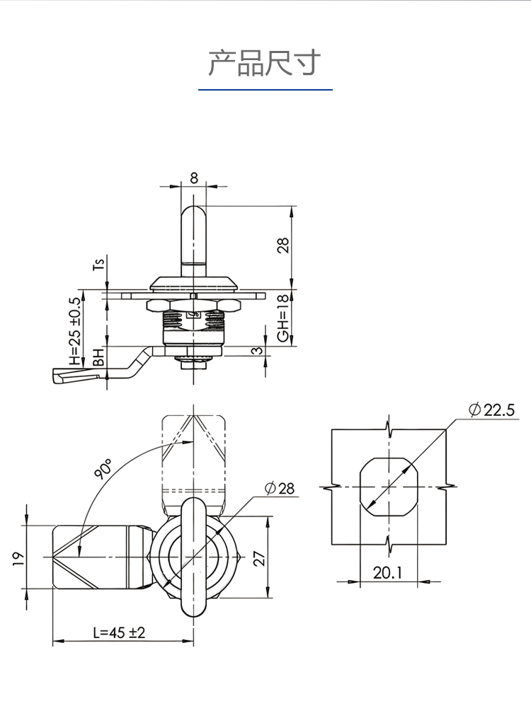 MS715-1圆柱锁开关控制柜门锁配电箱锁电柜箱锁把手锁转舌锁