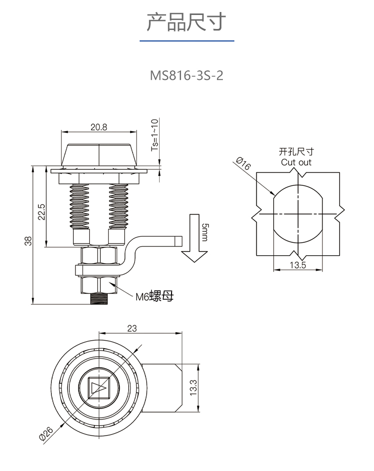 MS816-3S-2四方伸缩转舌锁配电箱柜锁电柜门锁开关柜配电箱圆柱锁