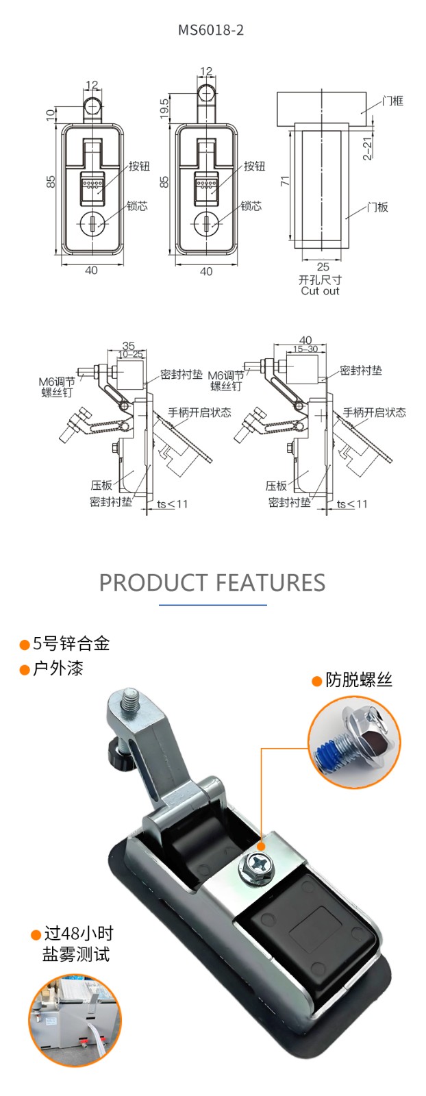 MS6018舱门锁配电箱电锁工业门锁平面锁可调节开关柜锁电柜门锁