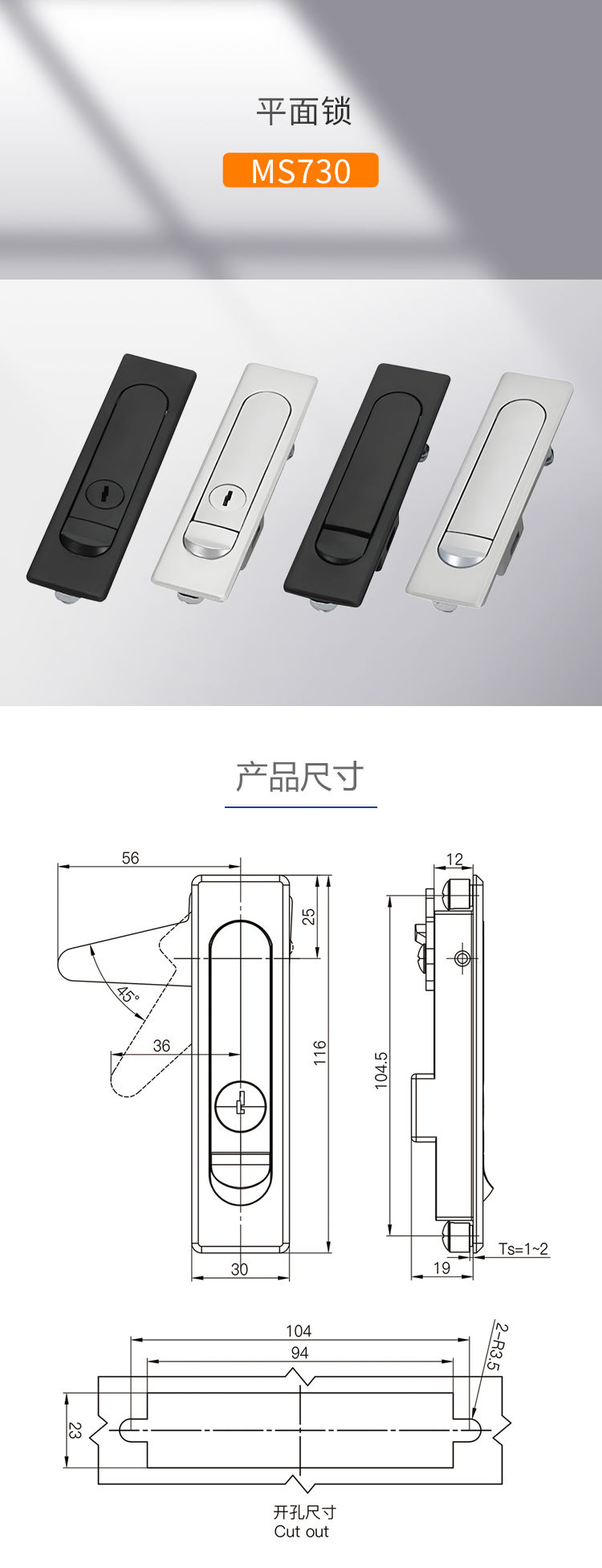 MS730门锁平面锁开关柜锁配电箱柜门锁工业按钮弹跳锁