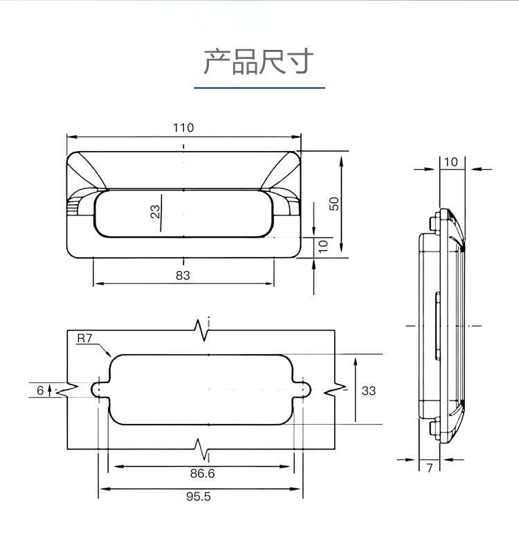 LS122内嵌式隐形拉手暗装工业机柜抽手配电柜拉手抽屉柜门