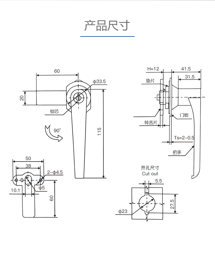 A17工业柜把手锁锌合金材质配电柜电箱消防柜机械设备锁