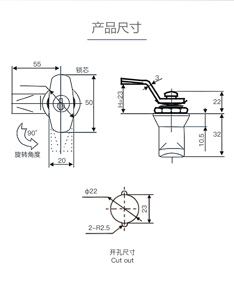 MS302消防铁皮柜锁开关控制柜门把手锁配电柜配电箱门锁