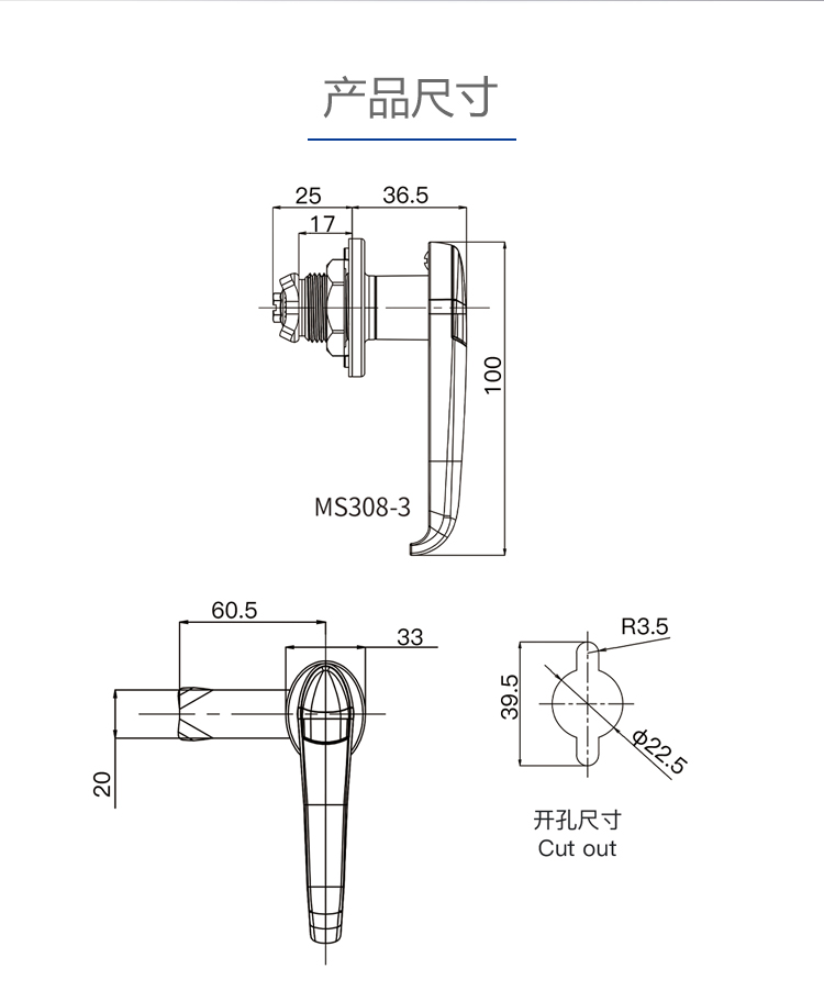 MS308-3配电箱把手锁户外配电柜门锁防雨箱执手锁开关柜门锁