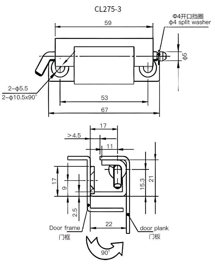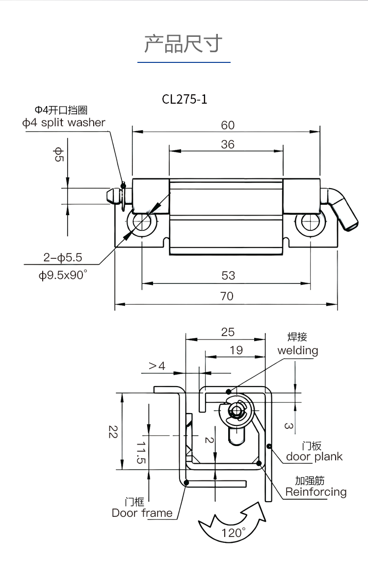 CL275不锈钢配电箱电柜门暗铰链工业设备基业箱网络机柜脱卸铰链