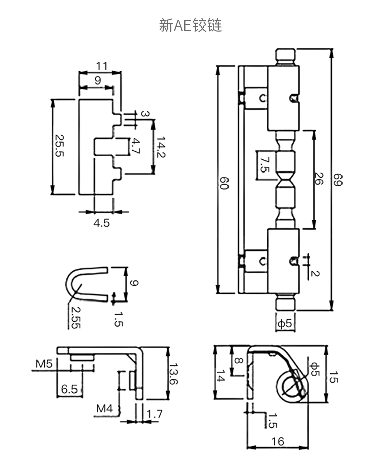 AE铰链PS柜开关柜铰链配电箱工业柜合页铰链铁皮柜暗铰链可焊接