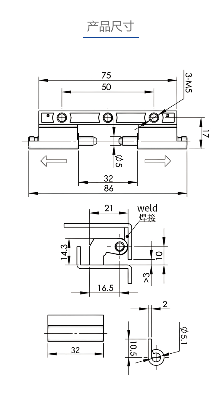 CL201-6电柜箱铰链焊接可拆卸威图柜小铰链控制开关柜铰链