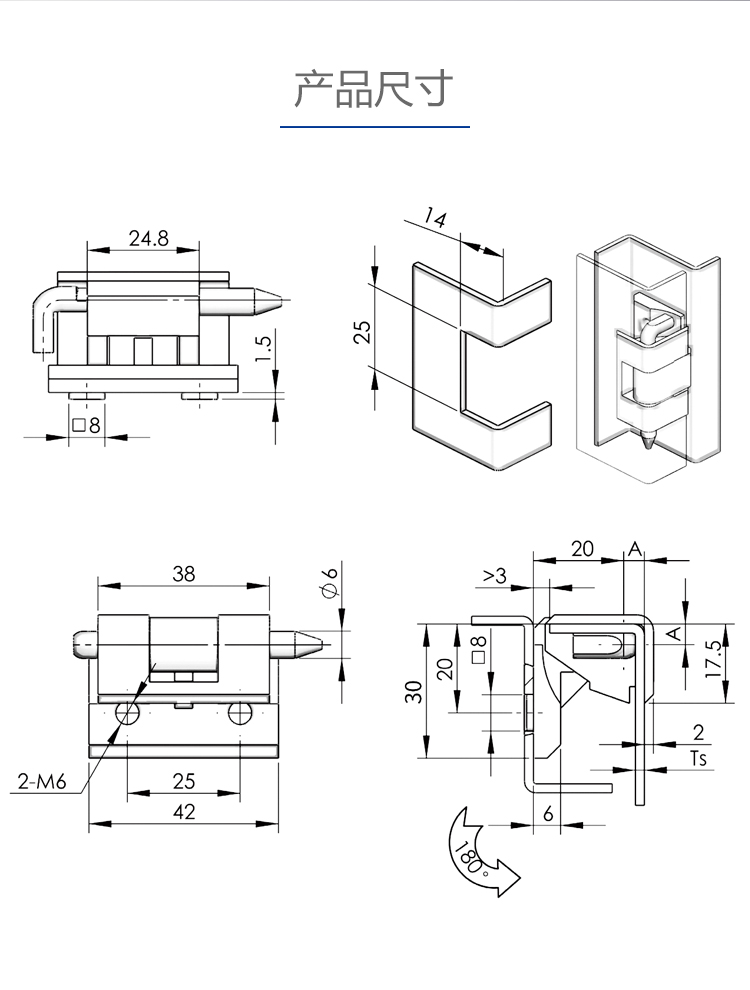 CL212配电柜电箱卡式铰链开关控制箱机柜门合页暗藏式内铰链