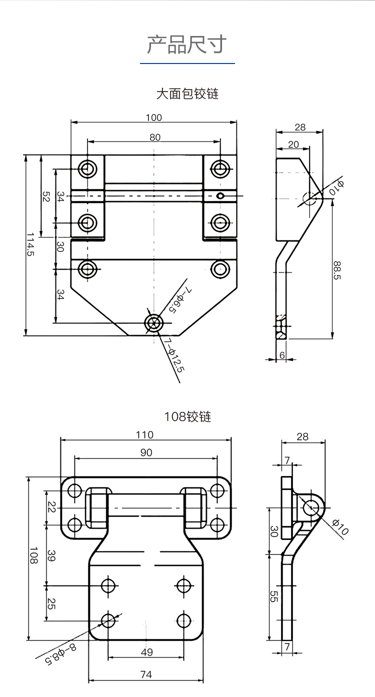 108加厚304不锈钢合页重型工业机械设备门铰链配电箱电柜合页
