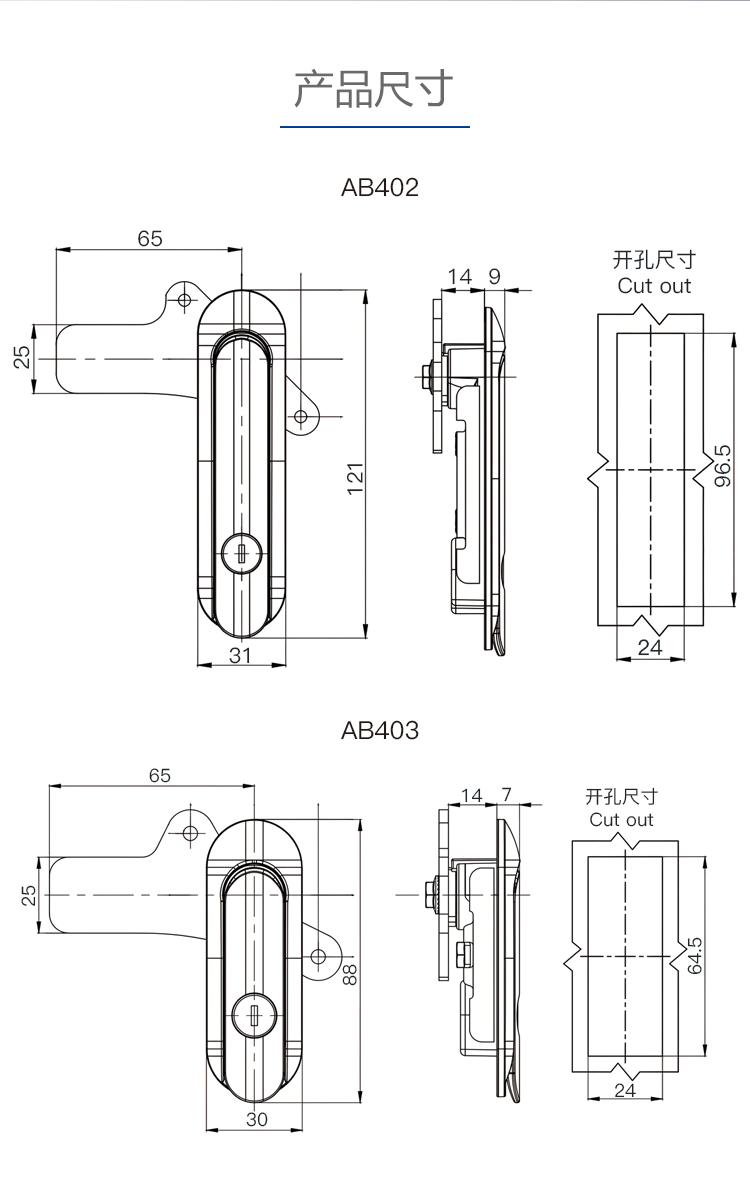 AB403不锈钢304材质平面锁配电箱锁AB402基业箱设备锁机械门锁
