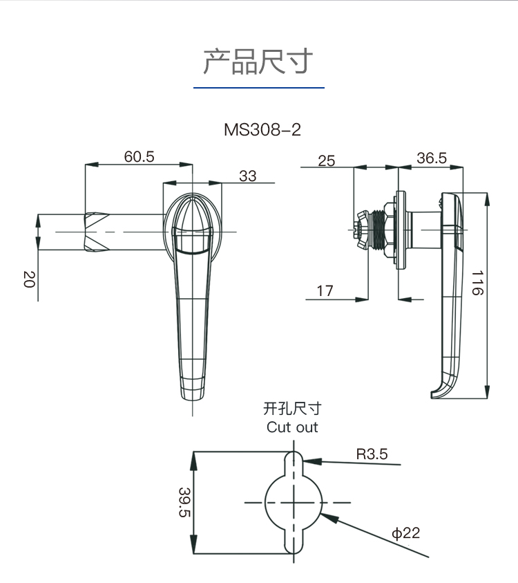 MS308-2/3不锈钢工业配电箱电柜执手锁开关控制柜门把手锁