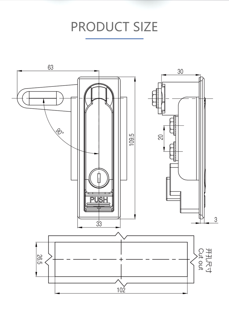 MS713不锈钢平面锁开关控制柜锁工业机械设备柜门锁配电箱电表锁